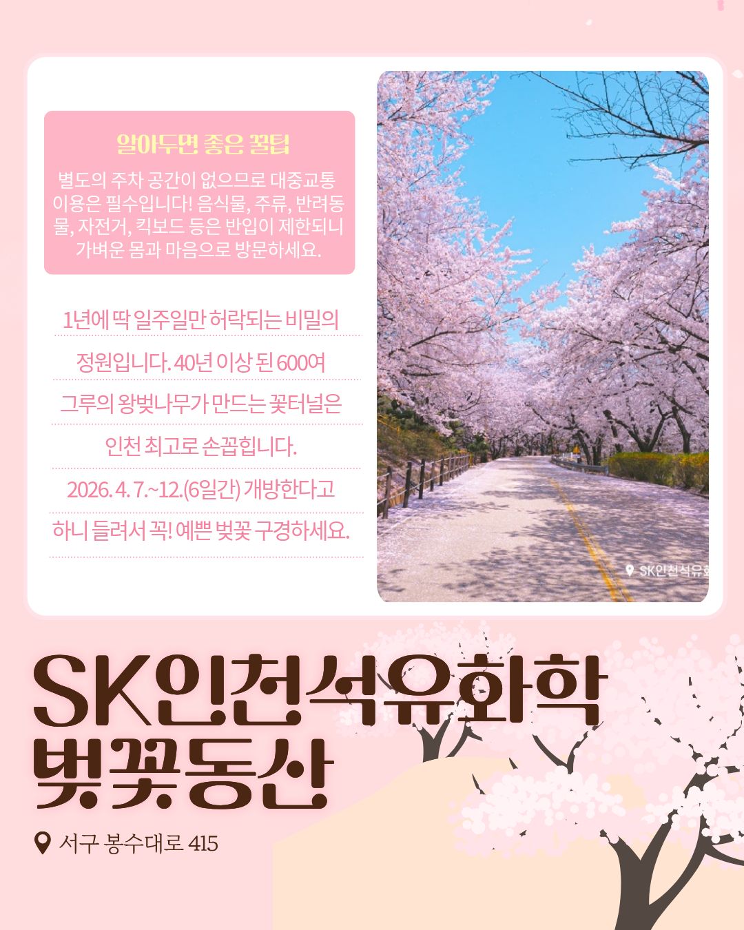 SK인천석유화학: 4/7~4/12 한정 개방되는 비밀의 정원
